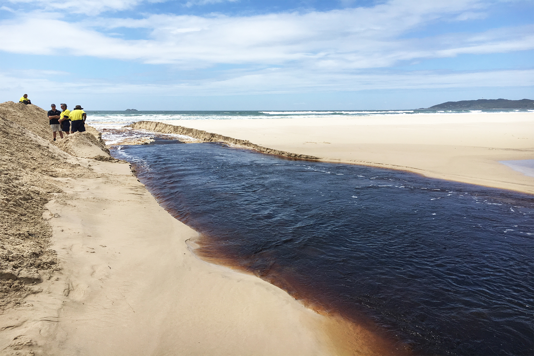 The project involved scaling up monitoring of these opening events to include 5 sites over 7 days post opening. Conductivity, water level and in situ water quality loggers were installed within the catchment to better understand the mechanisms behind the ‘need’ to artificially open the sand barrier between the estuary and the ocean.