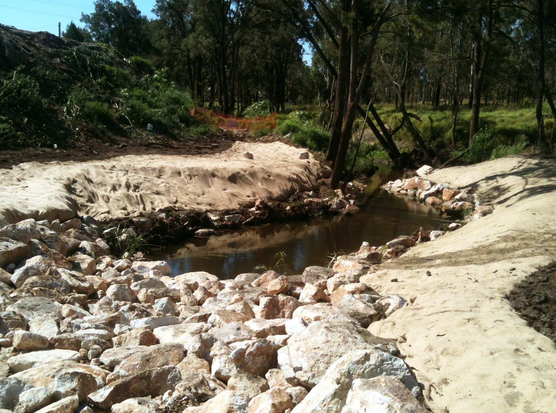 Restoration works were required at Bundamba Creek to halt an active head cut in close proximity to public infrastructure. Combined with extensive weed control and rehabilitation of the riparian zone, key objectives were to reduce stream bank erosion and improve the overall quality of the ecology and water quality.