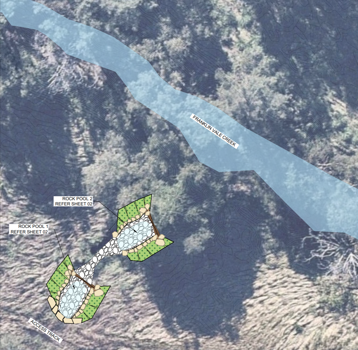 Large flood events, limited vegetation and high flows into a Franklin Vale Creek has eroded and destabilised the creek bank. AWC has been partnering with AWLQ were in a Design and Construct process to provide a solution to stabilise the bank and prevent further environmental damage and loss of land.