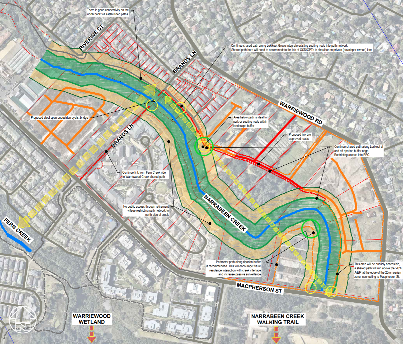 AWC conducted a detailed analysis of the riparian zone to determine such implications for future developments, including stream stability, native vegetation protection and enhancement, and public amenity improvements without increasing potential flooding issues.